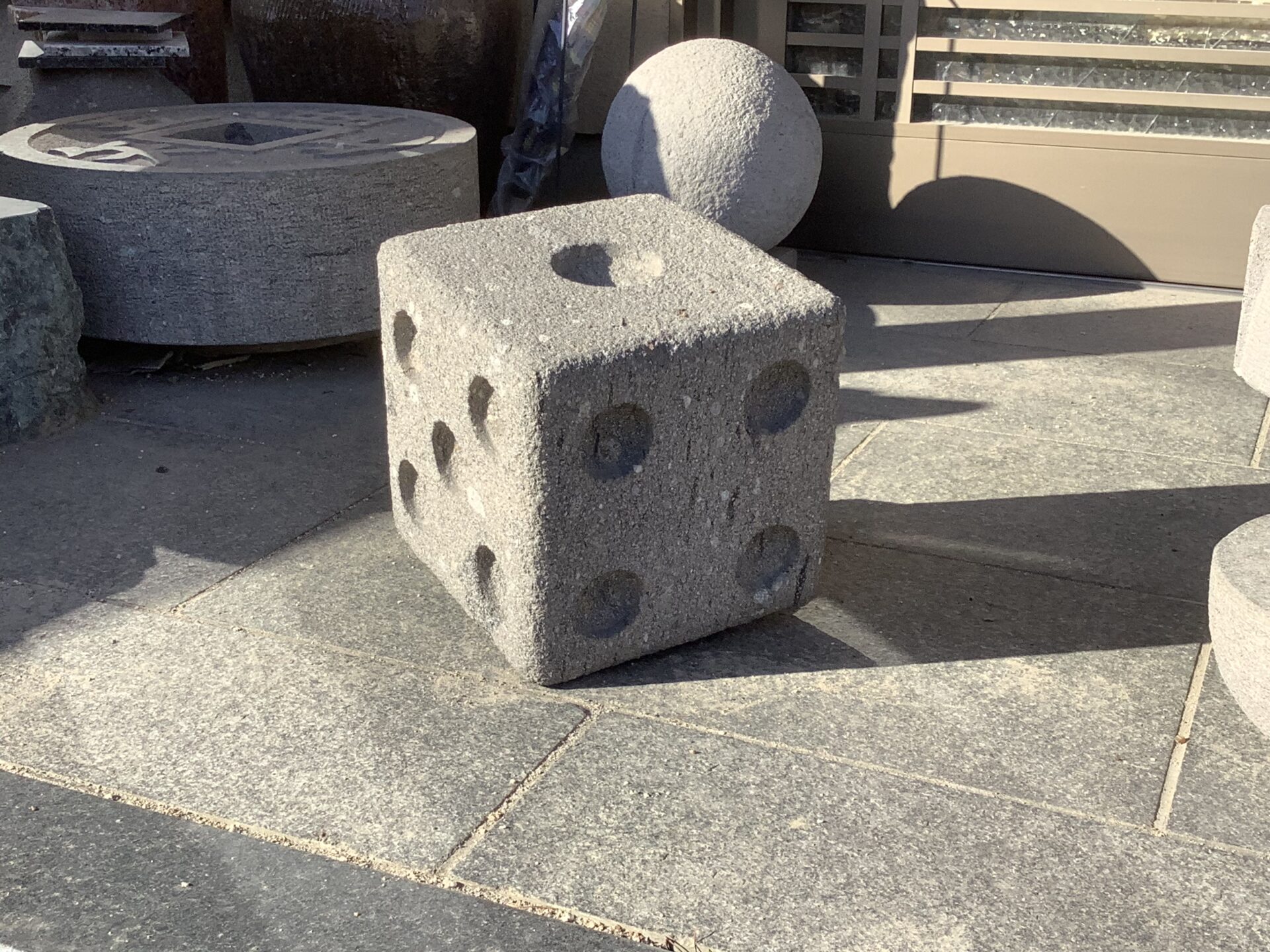 福島県産白河石 水鉢【サイコロ型水鉢】